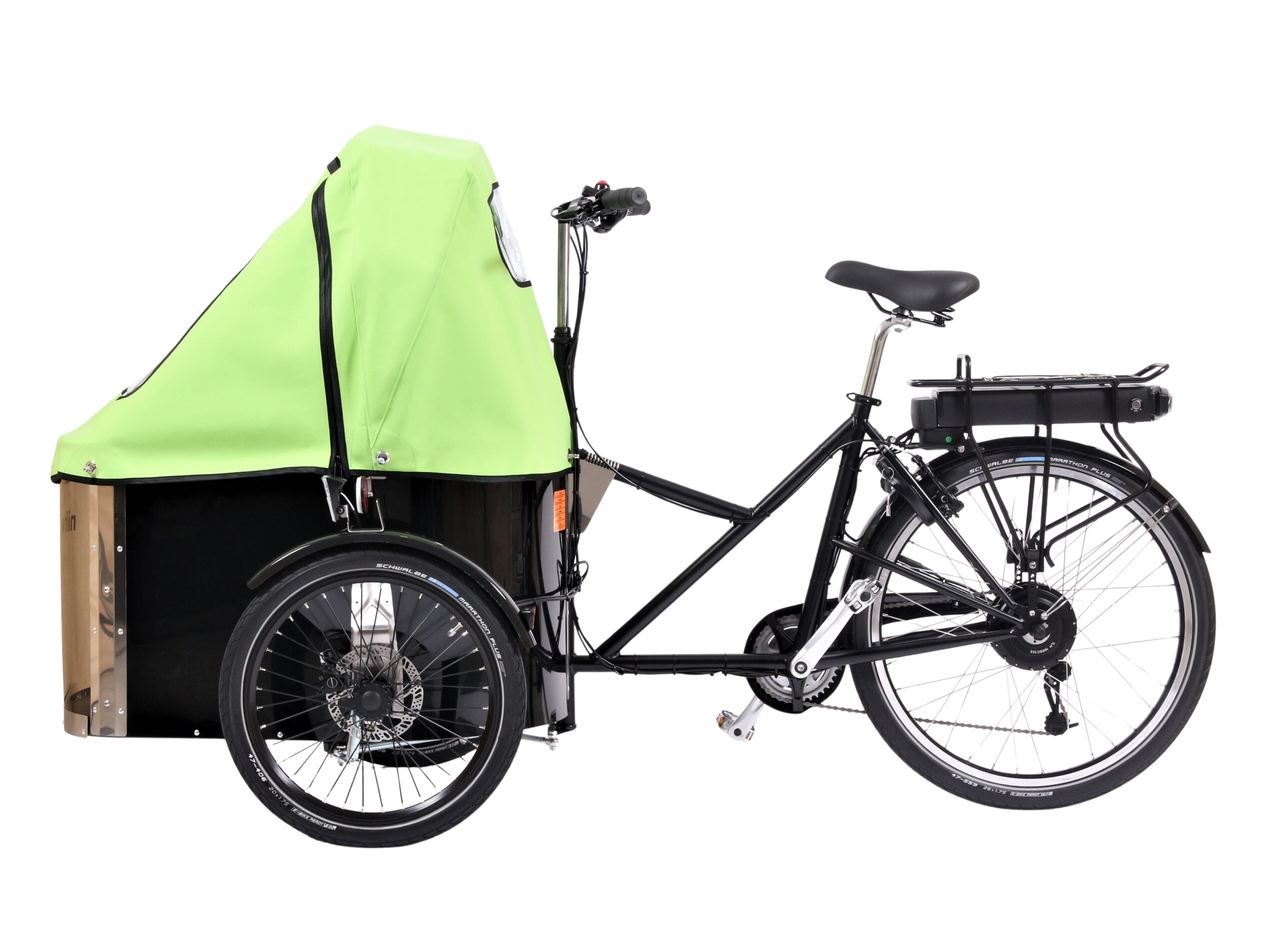 The Nihola Family cargo bike can carry up to 100 kg in the cabin plus the rider, with space for two children up to 7-8 years old or a carry cot/car seat. Its reinforced frame ensures safety for children, while the removable bench adds flexibility for your rides. It features Shimano Nexus 8-speed gearing, magura parking brakes, maintenance-free steering with a hydraulic damper, and durable aluminium components with stainless steel fittings. Measuring 2 meters long, 89 cm wide and weighing 32 kg, the bike combines robust functionality with comfort, making it a top-rated choice for transporting children.